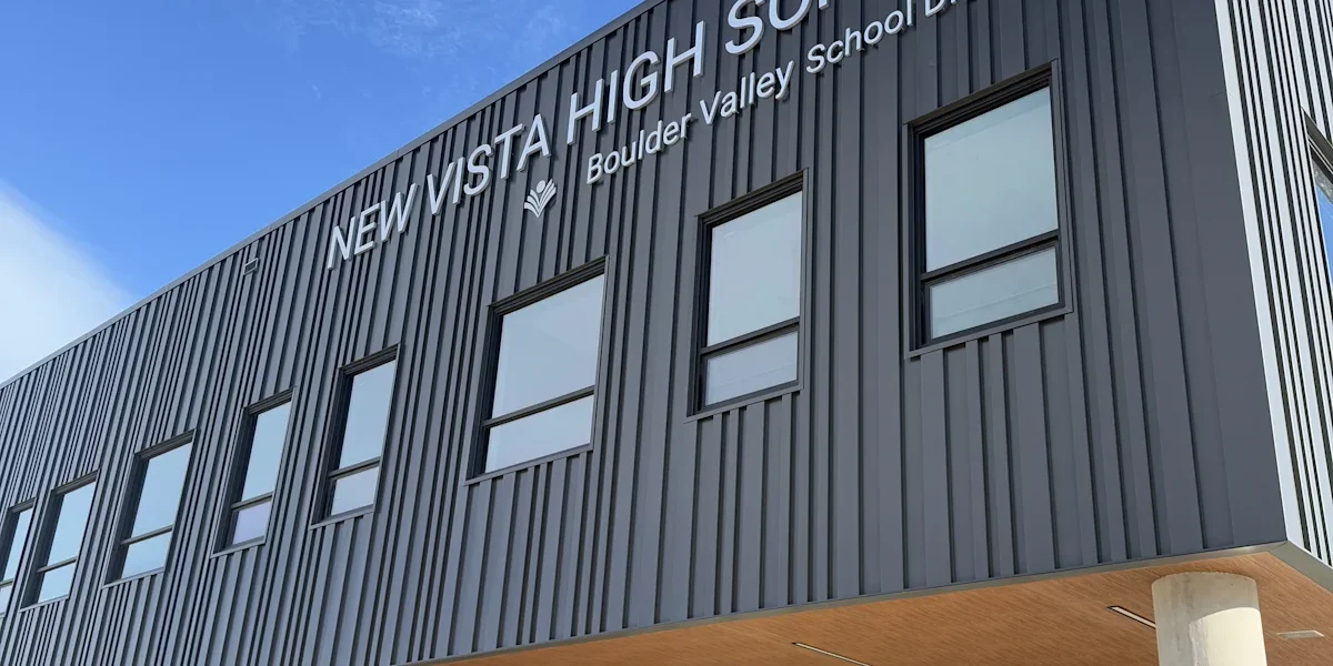 New Vista High School, a small alternative school located in Colorado’s Boulder Valley School District (BVSD), has reopened following the completion of a nearly $52 million construction project. The new campus—featuring naturally lit, sustainable spaces designed for flexible learning and teaching—welcomed 315 students for the spring semester on Jan. 7.